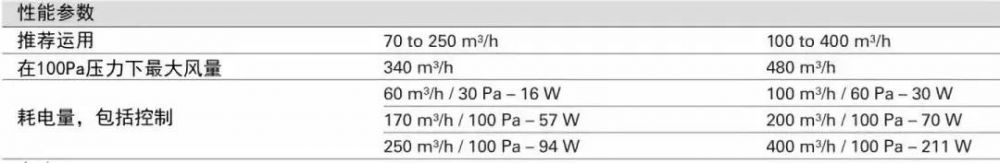 适加250touch型号的主机,机外静压(可用压力)100pa,风量达到340m3/h,功率94W;并配置湿度传感器和二氧化碳传感器,能效等级根据欧洲Erp指令,可达到A+